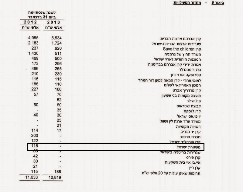 בשעה שמשרדי הממשלה נאבקים על תקציבים, משטרת ישראל שבשנים האחרונות נמנעת בעקביות מלהתלונן על התקציבים שלה (היכן הפגנות של ארגון "נשות השוטרים" שהיו כאן בעבר?), מוצאת זמן לתרום לארגונים לא ממשלתיים, בעלי אג'נדה פוליטית, שנתמכות ע"י אישות זרה, כגון שגרירות ארה"ב ושגרירות בריטניה.